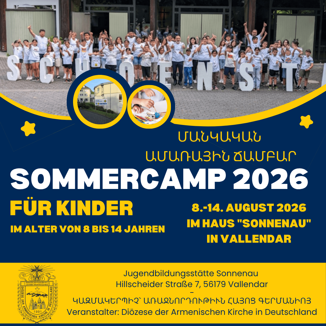 ՄԱՆԿԱԿԱՆ ԱՄԱՌՆԱՅԻՆ ՃԱՄԲԱՐ 2026 SOMMERCAMP FÜR KINDER 2026 Liebe Kinder und liebe Eltern, gern möchten wir Euch auf das Sommercamp der Diözese der [...]