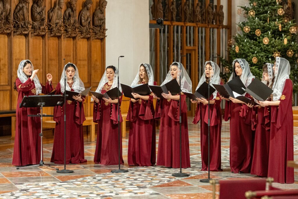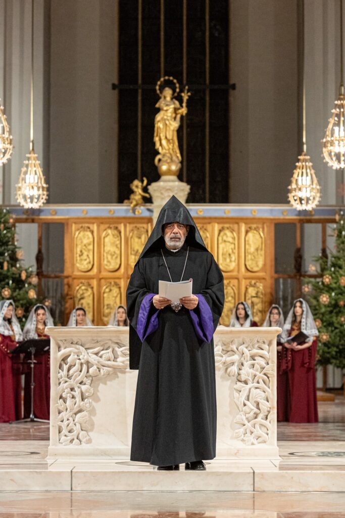 Արարողութեանը իր երգեցիկ մասնակցութիւնը բերեց նաեւ Աղօթաշաբաթի առիթով Գերմանիա հրաւիրուած Գեղարդ երգչախումբը՝ խմբավարութեամբ Անահիտ Պապայեանի։ Երգչախմբի կատարմամբ արարողութեան ընթացքում հնչեցին «Հրաշափառ» եւ «Թագաւոր երկնաւոր» շարականները, «Քրիստոս ի մէջ մեր յայտնեցաւ» ողջոյնի շարականը, Արեւագալի ժամերգութեան «Լոյս»ը եւ Կիրակմուտքի ժամերգութեան «Լոյս զուարթ»ը, «Հայր մեր» տերունական աղօթքն ու «Ամէն հայի» հայրապետական մաղթերգը։