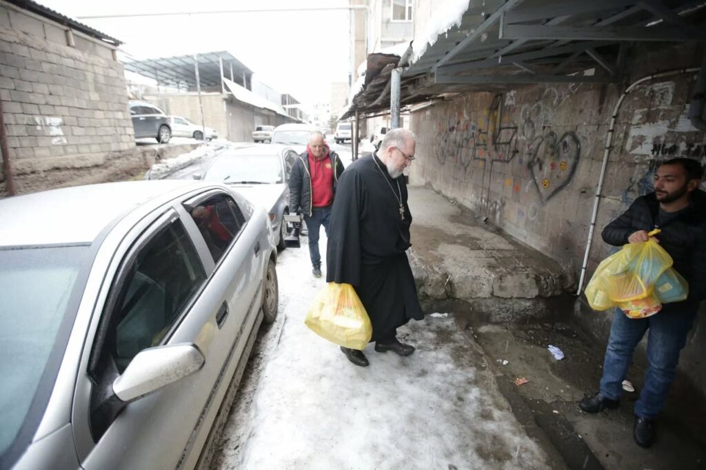 Mit dem Segen unseres Primas, Bischof Serovpé Isakhanyan, reiste unser baden-württembergische Gemeindepfarrer Pfr. Dr. Diradur Sardaryan Anfang Januar für einige Tage nach Armenien, um das Hilfsprojekt vor Ort, in Kooperation mit der Diözese Vayots Dzor in Armenien, umzusetzen. Gemeinsam mit den Ortspfarrern besuchte er mehrere Dörfer der Region und verteilte die Hilfsgüter, bestehend aus Lebensmitteln und Hygieneartikeln, persönlich an die Menschen.